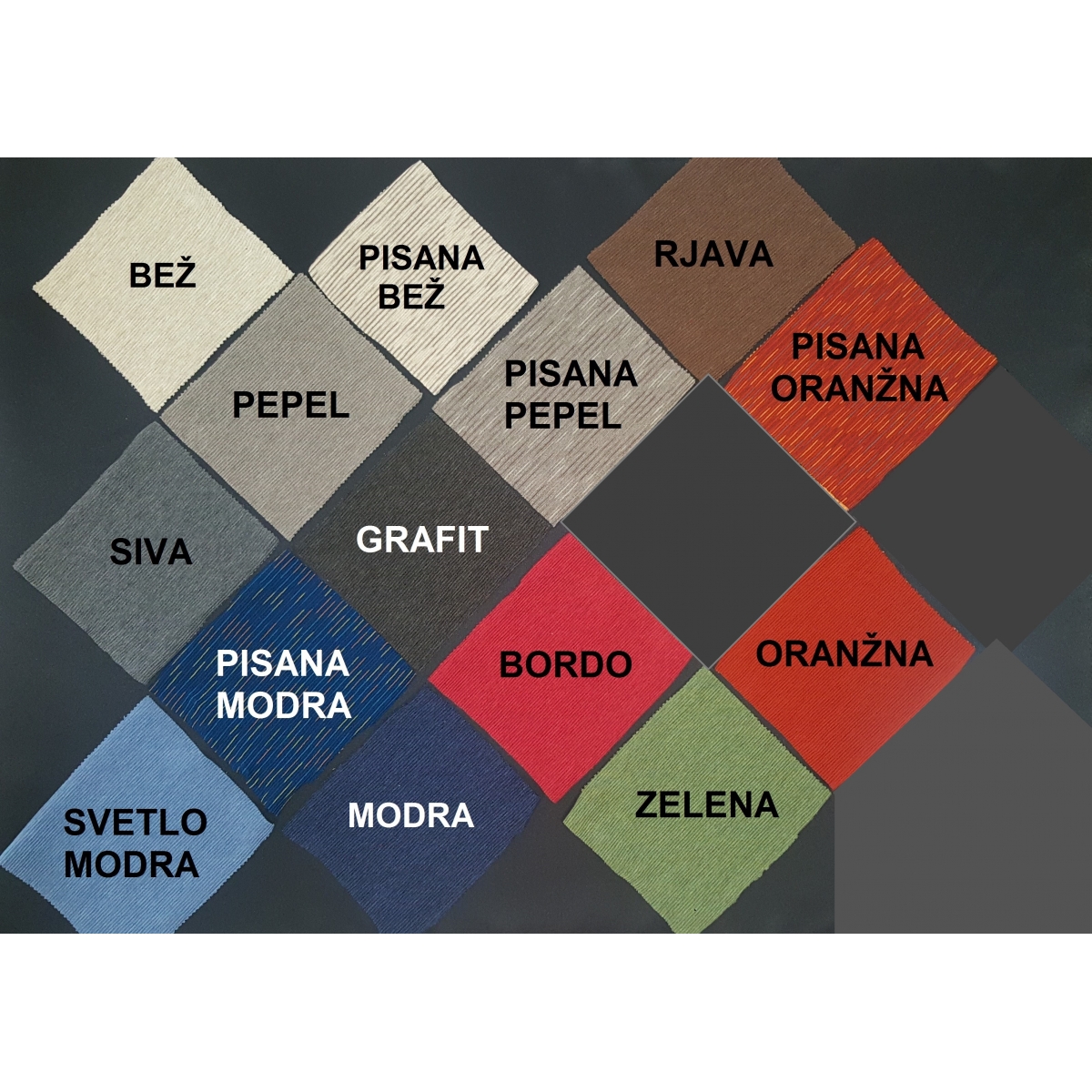 Blago je na voljo je v širokem spektru barvnih odtenkov.