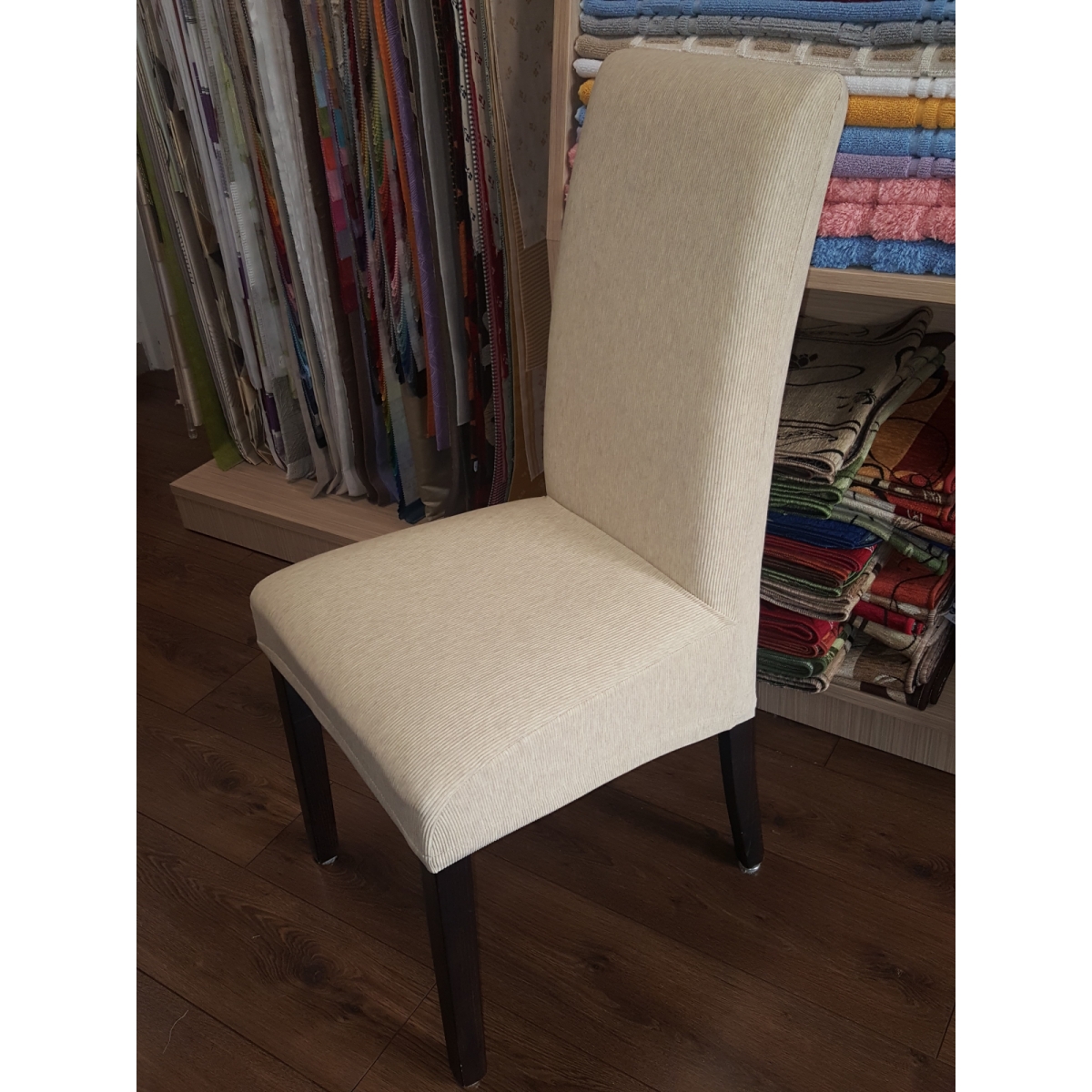 Prevleke so izdelane iz kvalitetnega elastiziranega blaga, ki je raztegljivo in oprijemljivo, zato se lepo prilega na stole. Blago ima posebno anti-piling obdelavo ki preprečuje kepanje blaga. Prevleke iz elastana lahko pripravimo samo za sedišče stola, v primeru da je oblazinjeno tudi hrbtišče pa lahko prevleko prirpavimo za ves oblzinjen del stola. Prevleke so zelo enostavne za postavitev in se lahko strojno perejo na 40 stopinj.